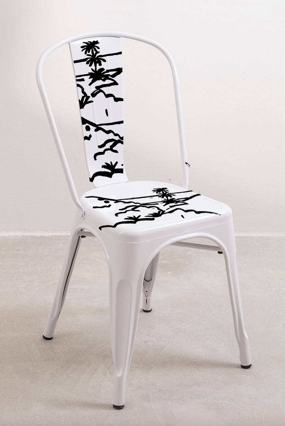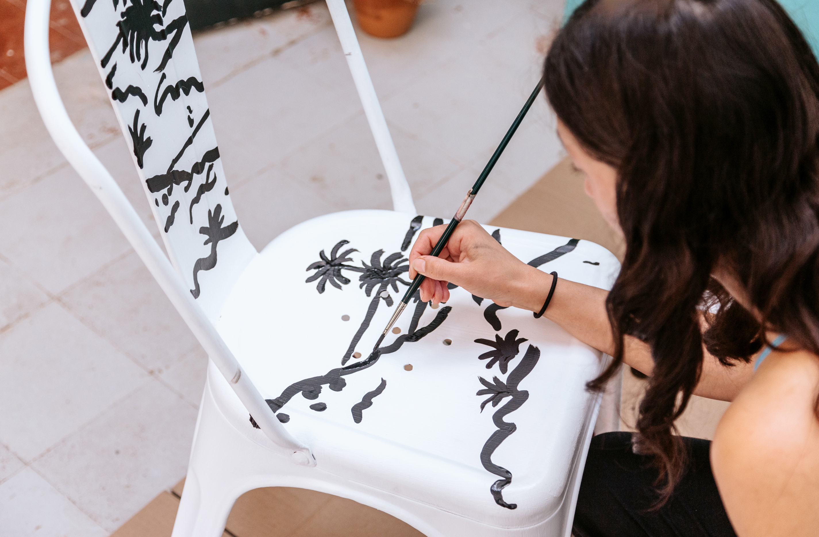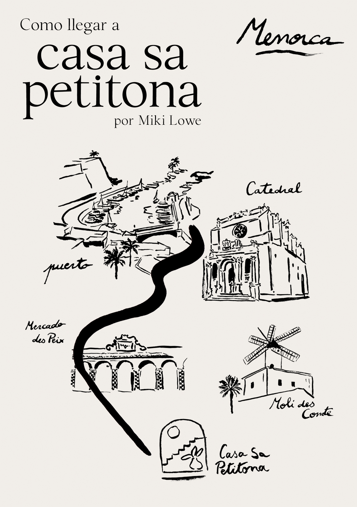 On site drawing on furniture and illustrations of local landmarks for a flyer and some printed material such as T-shirts and tote bags for gallery and shop Casa Sa Petitona in Ciutadella, Menorca